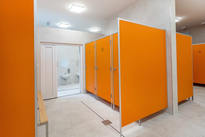 Oferujemy nowoczesne kabiny sanitarne HPL, znane również jako kabiny systemowe lub kabiny z laminatu HPL, wykonane z wysokiej jakości materiałów idealnych do intensywnie użytkowanych pomieszczeń o podwyższonej wilgotności, takich jak toalety publiczne, łaźnie, przebieralnie, czy szatnie.