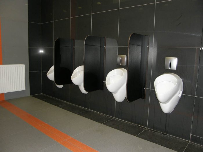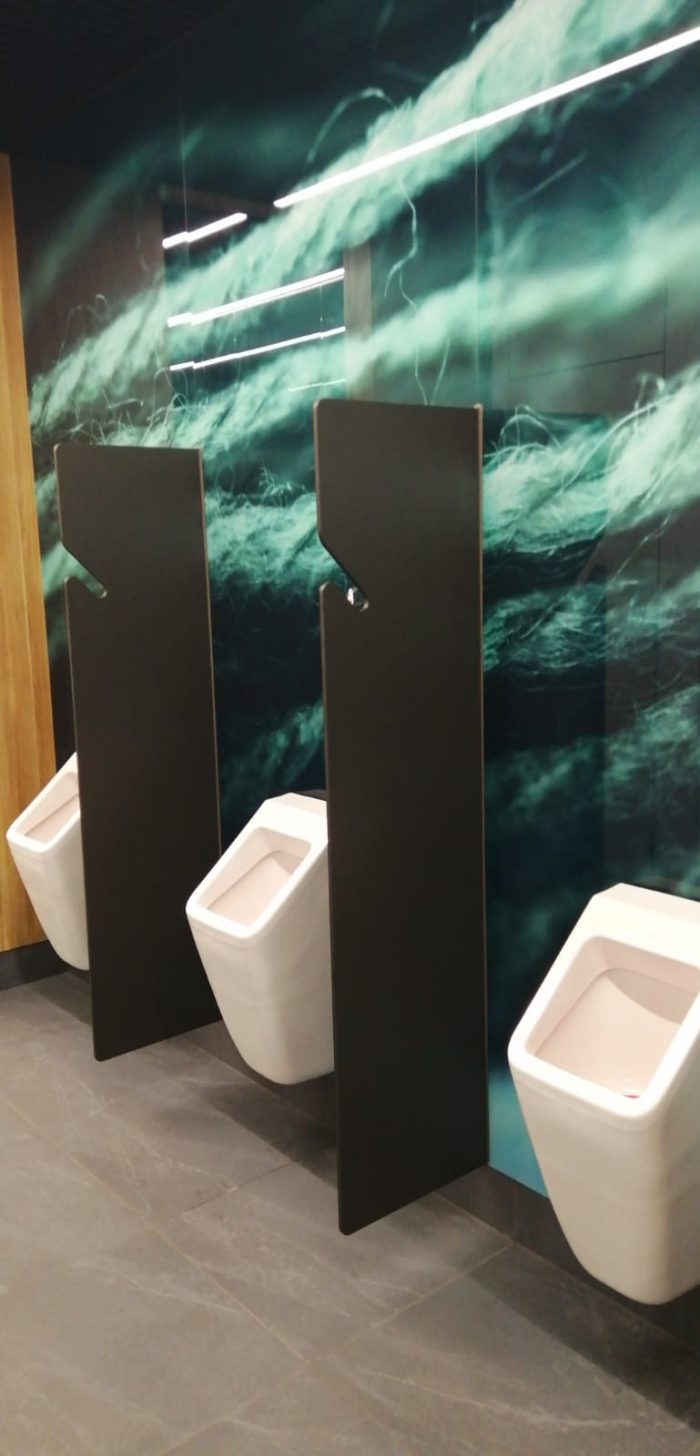 Przegrody pisuarowe w systemie PBM budowane są na podstawie płyt z litego laminatu HPL o grubości 12 mm. Konstrukcja wykonana w całości z litego laminatu HPL. Opcjonalnie konstrukcja może opierać się na profilach aluminiowych bądź elementach ze stali nierdzewnej.