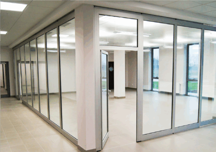 W wersji przeszklonej, ściany mobilne szklane pozwalają na fizyczne i akustyczne oddzielenie przestrzeni bez utraty efektu przestronności i światła dziennego.
